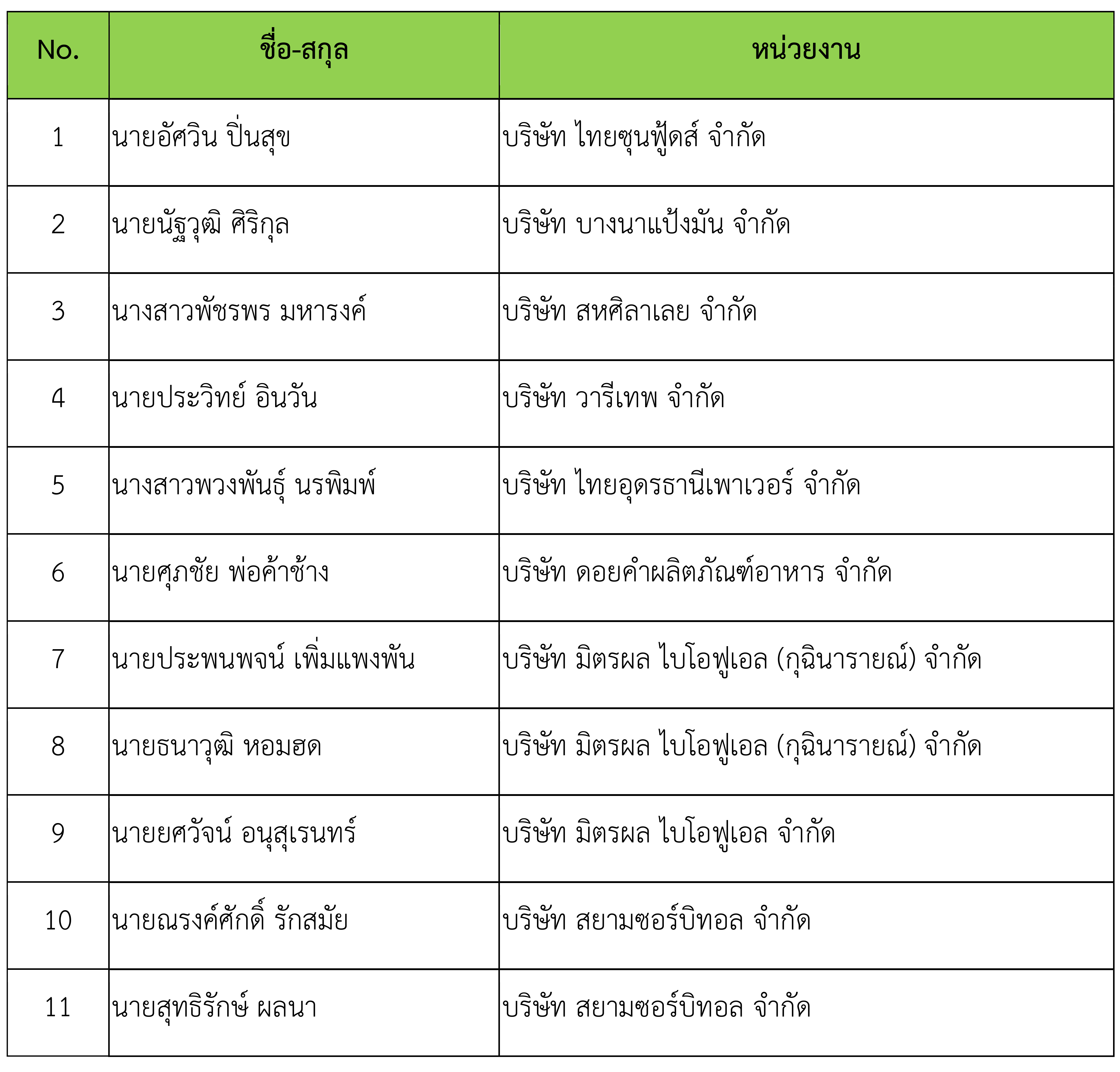 รายชื่อผู้เข้าอบรม